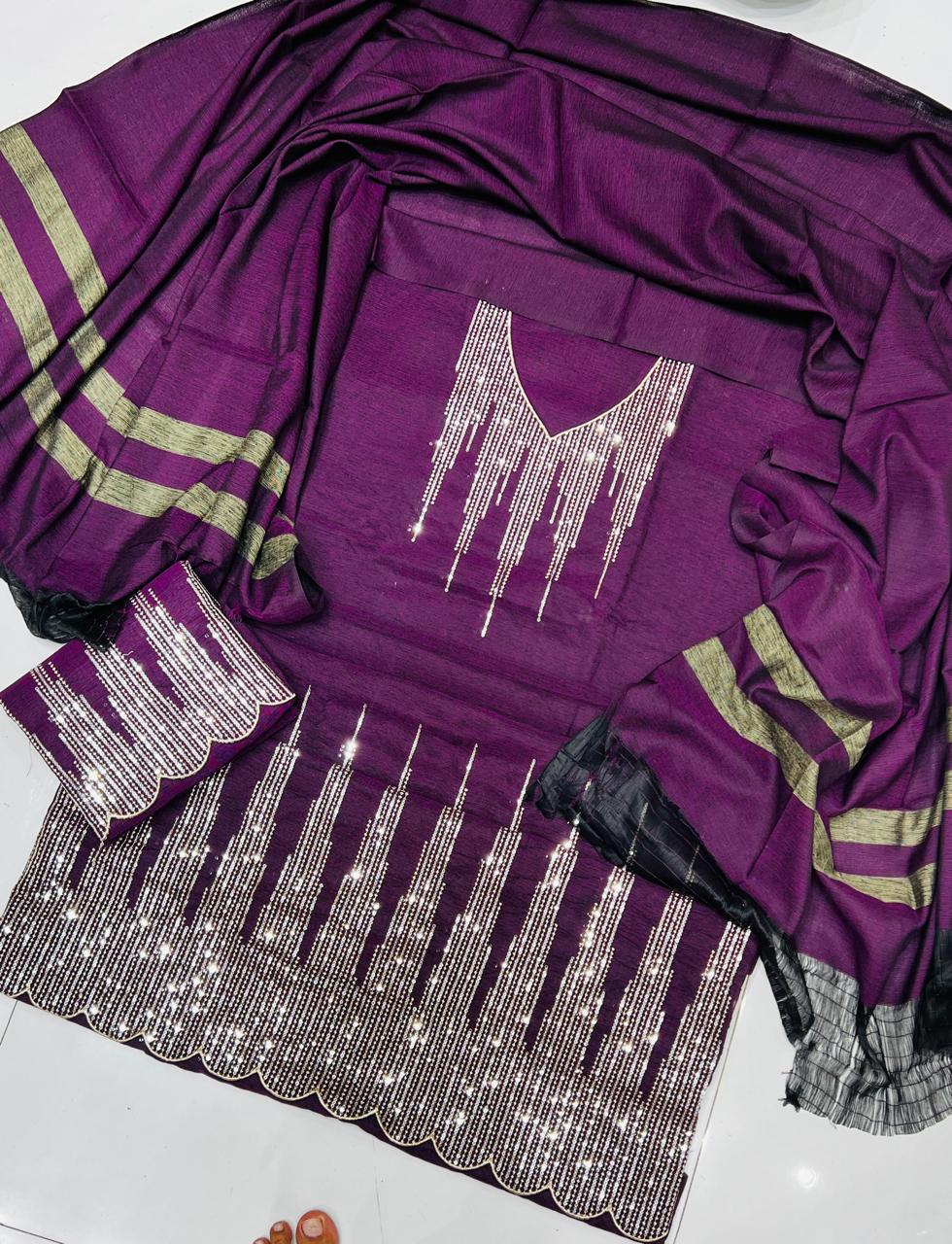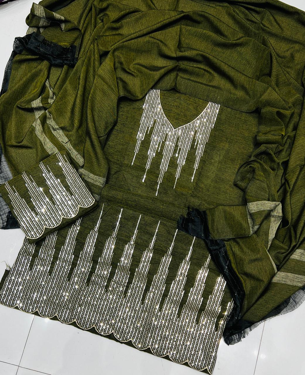 Luxury 3 Pcs khaddar Embroidery Suit Ustitched